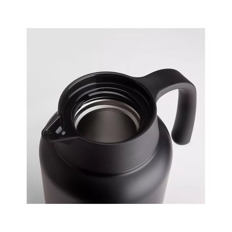 Внутренняя колба выполнена из нержавеющей стали, марки AISI 316. Она характеризуется коррозийной стойкостью и прочностью. Корпус самого термоса изготовлен из пищевой стали и полипропилена. V-образный носик обеспечивает плавный поток воды.