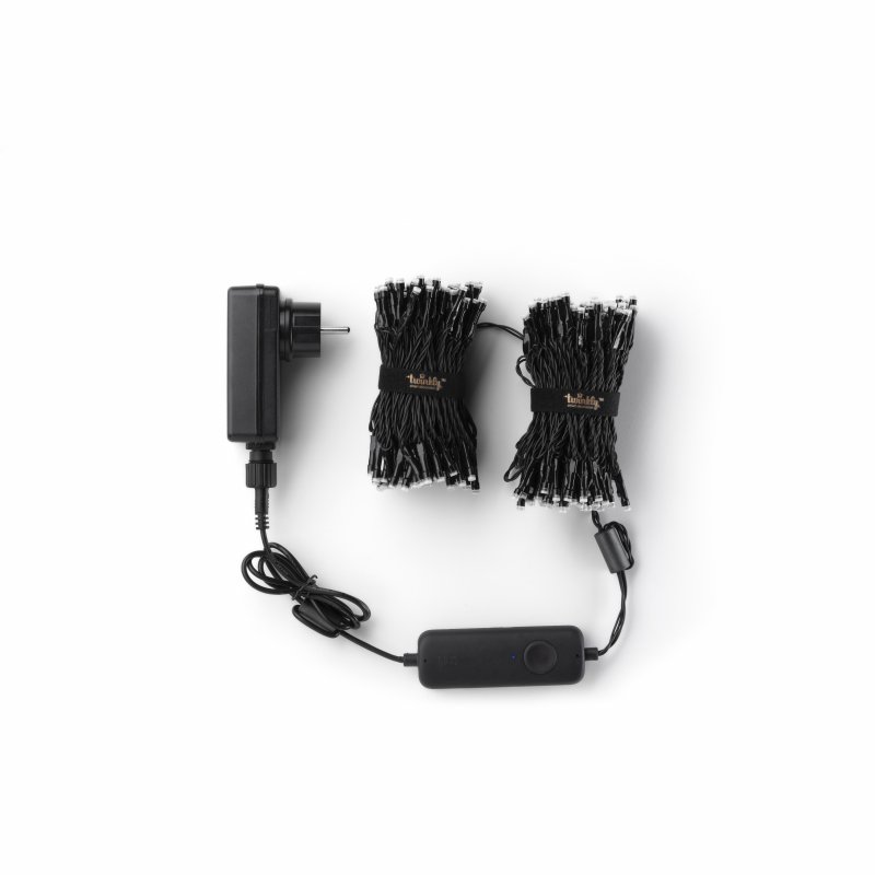 Twinkly - особо эффектные премиум гирлянды, управляемые как кнопкой на гирлянде, так и из мобильного приложения Twinkly в них каждый светодиод управляется программой отдельно создавая великолепные эффекты. Twinkly предлагает набор эффектов и каждый из них можно в мобильном приложении легко и захватывающе модифицировать или создавать полностью новые. Голосовое управления Google Assistant и Amazon Alexa (пока лишь на англ языке) разнообразит управление гирляндой. С помощью аксессуара Twinkly Music Dongle (приобретается отдельно) световые эффекты синхронизируются с музыкой. Разные гирлянды Тwinkly могут быть объединены программно в одну синхронно светящуюся группу. Гирлянды Twinkly разработаны как для внутреннего, так и для наружного (стандарту IP44) использования.