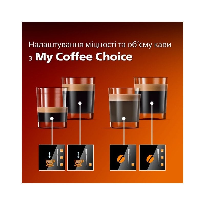 Регулируйте крепость и количество кофе с помощью меню My Coffee Choice. Легко выбирайте одну из трех настроек в соответствии со своими предпочтениями.