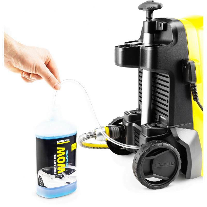 Благодаря компактным размерам мойка высокого давления K 4 Classic Car поместится и в багажнике автомобиля, и в стенном шкафу. Он очень удобен в транспортировке и имеет при этом высокие параметры производительности. Благодаря комплекту для мойки автомобилей, включающему насадку для пенной чистки, вращающуюся моечную щетку и автомобильный шампунь, минимойка K 4 Classic Car прекрасно подходит для периодической очистки умеренно загрязненных транспортных средств. Аппарат укомплектован также пистолетом Quick Connect с разъемом, 6-метровым шлангом высокого давления, струйной трубкой Vario Power, фрезой для устойчивой грязи и фильтром для воды. Модель K 4 Classic Car с производительностью по площади 30 м²/ч является идеальным решением для регулярного устранения загрязнений средней степени (например, для очистки садовых заборов, мойки велосипедов или небольших автомобилей)