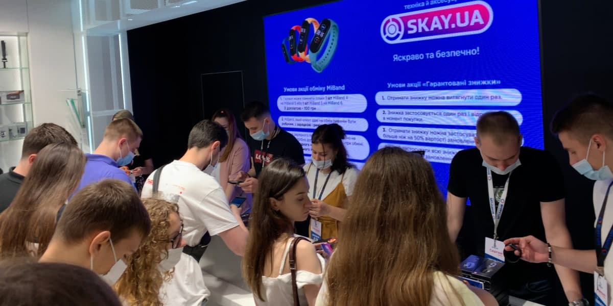 Очередь ждала не просто так. Первые пришедшие успели обменять популярные фитнес-трекеры Mi Band на следующую версию. Число мы выбрали символичное: 21 июня, 2021 года, 21 счастливчик обменял свой старый Mi Band 4 на новенький 5 и еще 21 поменяли Mi Band 5 на новенький 6. Это мог сделать любой желающий, доплатив всего 100 грн.