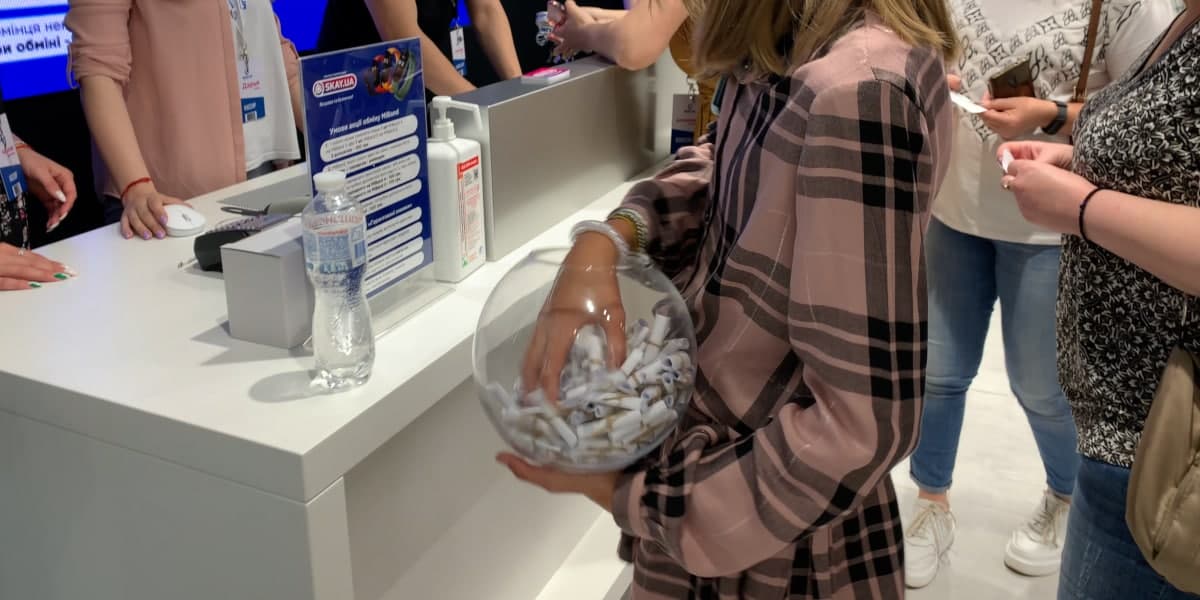 Каждый пришедший получил гарантированную скидку на любой товар. Перед покупкой человек вытягивал сверток, на котором обозначена цена скидки от 100 до 500 грн. Все остались довольны новыми покупочками по очень выгодным ценам.
