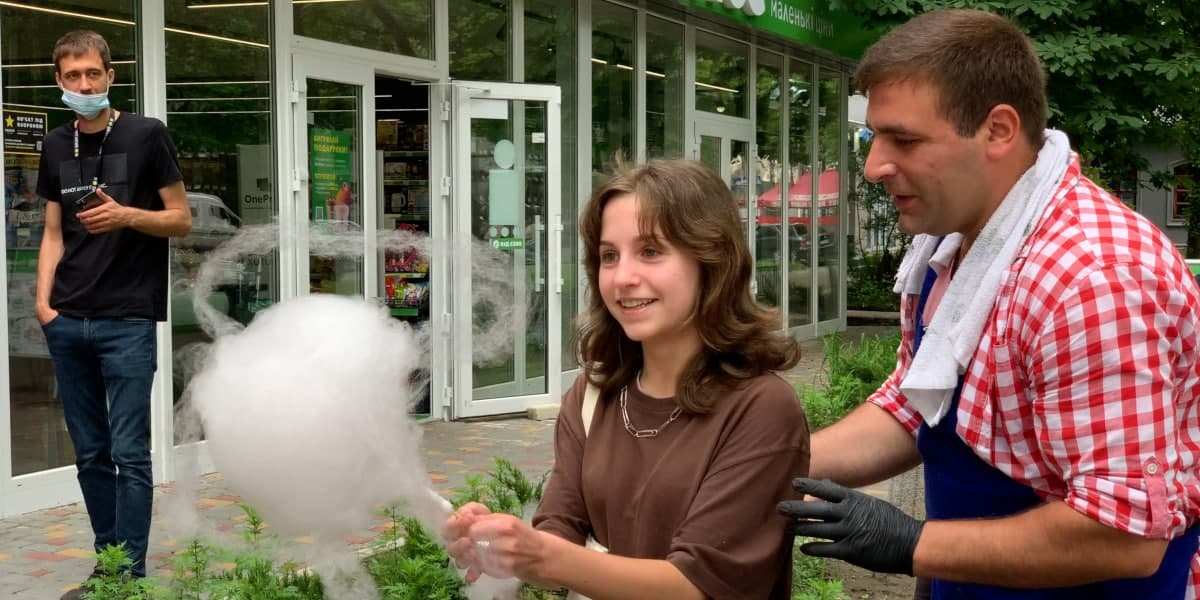Помимо обмена и скидок, на открытии был диджей и отличный плейлист, а вместо обычной раздачи сладкой ваты - целое шоу. Люди приходили семьями и дети учились крутить сладкую вату, делая из нее все, на что хватило фантазии. Души и творчества в угощении было больше, чем сахара!
