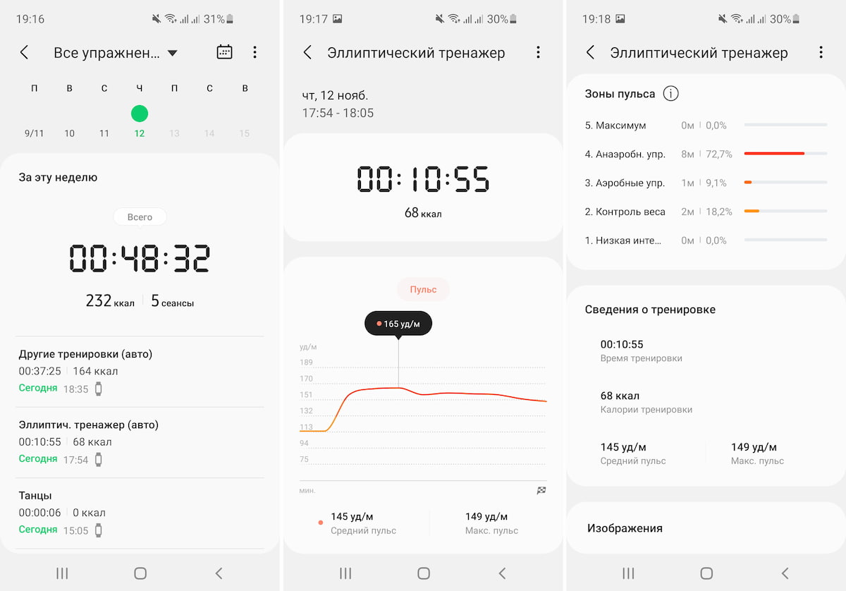 Здесь я больше хочу поговорить не о самом виджете, а о том, насколько точно Galaxy Fit2 измеряет частоту сердечного ритма. Я проверяла с показаниями эллиптического тренажёра, а также с показаниями на тонометре. Чаще всего показания плюс/минус совпадают.А иногда нет.