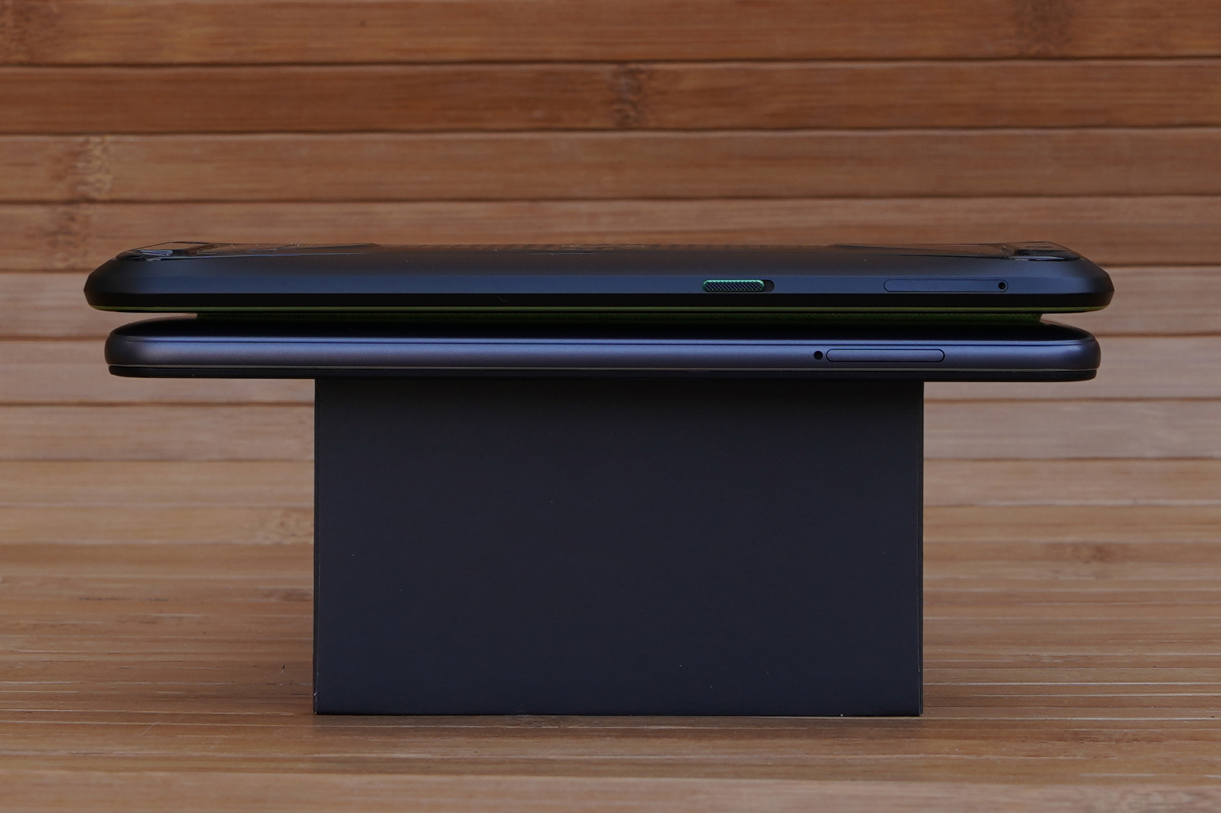С левой стороны расположен слот для Sim-карт, а у Black Shark дополнительно переключатель для игрового режима.