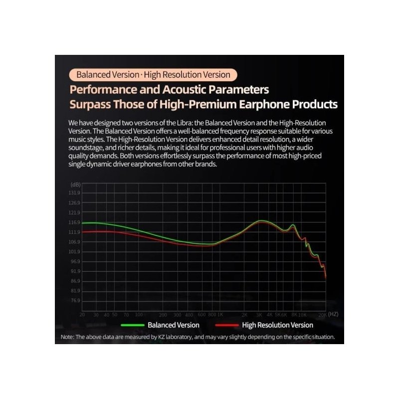 Універсальні параметри аудіо: версії з балансованою та високою роздільною здатністю: для різноманітних потреб у прослуховуванні KZ Libra IEM пропонує як збалансовану версію, так і версію з високою роздільною здатністю. Збалансована версія ідеально підходить для різних музичних стилів, забезпечуючи всебічне відчуття від прослуховування. Крім того, версія з високою роздільною здатністю забезпечує покращену роздільну здатність деталей і ширшу звукову сцену, що робить її ідеальною для професійного використання. Ці варіації продукту гарантують ідеальний KZ Libra IEM на будь-який смак