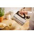 Кришка плавно відкривається натисканням кнопки, що виключає контакт із парою. Широкий отвір спрощує процес очищення.