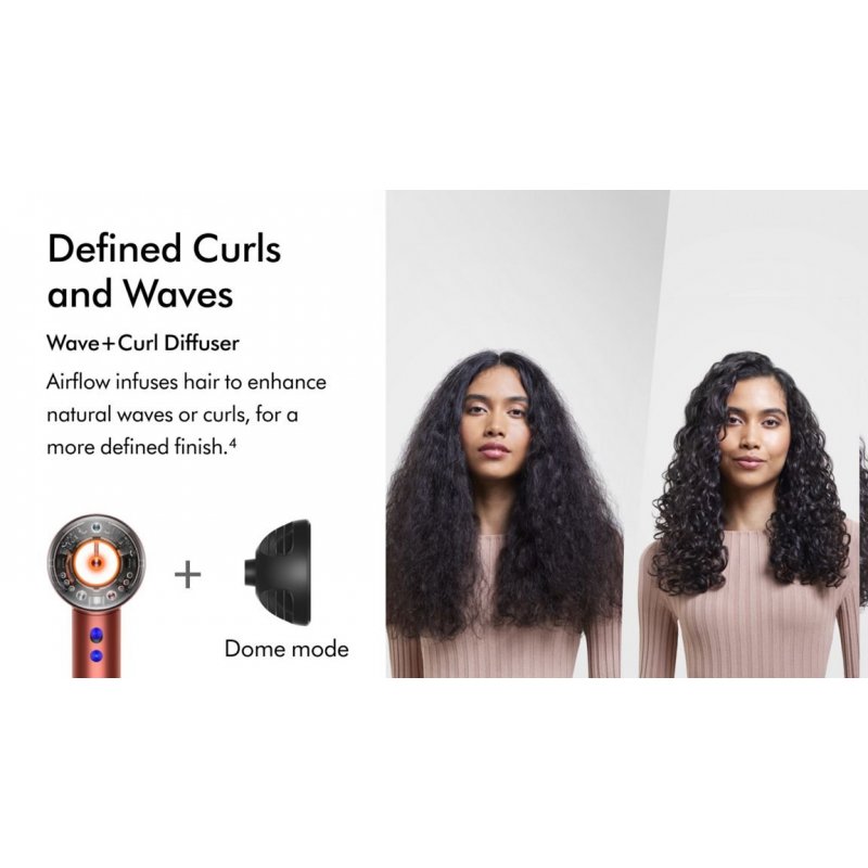 Одне кріплення, два режими. Режим «Купол» наповнює волосся, підкреслюючи природні хвилі або кучері, створюючи чіткішу обробку. Дифузний режим додає об'єм у коренів для текстурованих природних локонів та завитків.
