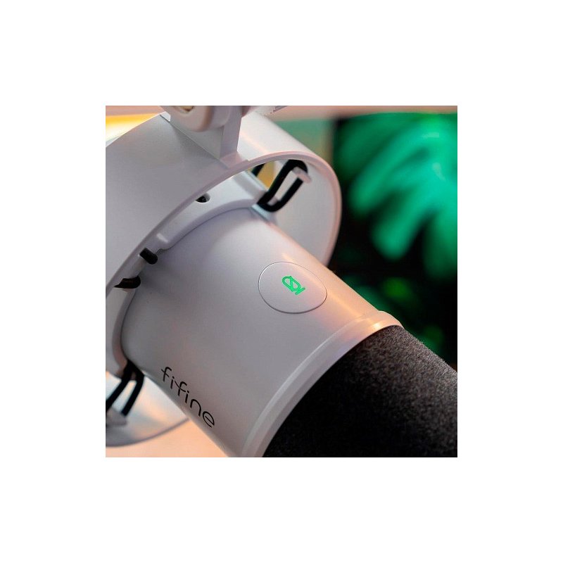 Мікрофон Fifine K688W оснащений зручними елементами керування, включаючи регулятори гучності для навушників та мікрофона, а також сенсорну кнопку вимкнення звуку. Ці функції дозволяють легко налаштовувати звук та контролювати запис у режимі реального часу, забезпечуючи максимальний комфорт під час роботи. Сенсорна кнопка вимкнення звуку розташована на верхній частині мікрофона та має світловий індикатор, який сигналізує про активність мікрофона, що робить керування ще простішим та інтуїтивно зрозумілим.