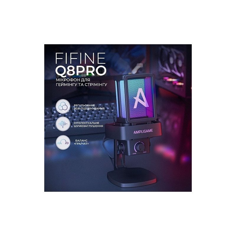 Мікрофон Fifine Q8PRO — конденсаторний мікрофон із природним, чистим звучанням, створений для геймерів, стримерів та подкастерів. Завдяки активному шумозаглушенню та високій чутливості ваш голос звучить чітко навіть у шумному середовищі. USB Type-C підключення не потребує драйверів, а 3,5 мм вихід дозволяє моніторити звук без затримок. Фізичні регулятори й сенсорна кнопка mute з LED-підсвіткою додають зручності під час гри чи трансляцій. Сумісний із Windows, macOS, PS4/PS5. Q8PRO — усе, що потрібно для якісного звуку без зайвого клопоту.