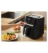 Діапазон регулювання температури від 80°C до 200°C дозволяє не лише смажити, але й запікати, розігрівати або навіть сушити продукти. Попередньо встановлені програми для популярних страв (наприклад, картопля фрі, курка, риба) спрощують приготування, вимагаючи лише одного натискання кнопки.
