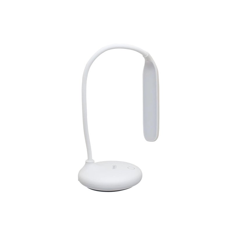Настільна лампа REMAX RT-E190 - компактна лампа невеликих розмірів. Лампа має форму, підлаштовуємую під необхідне положення. Сенсорні кнопки зручні і практичні у користуванні. Кріплення лампи здійснюється прищіпкою, передбаченої у конструкції пристрою. Пристрій працює від 4 до 12 годин в залежності від типів освітлення. Аксесуар має батарею ємністю 1200 mah.