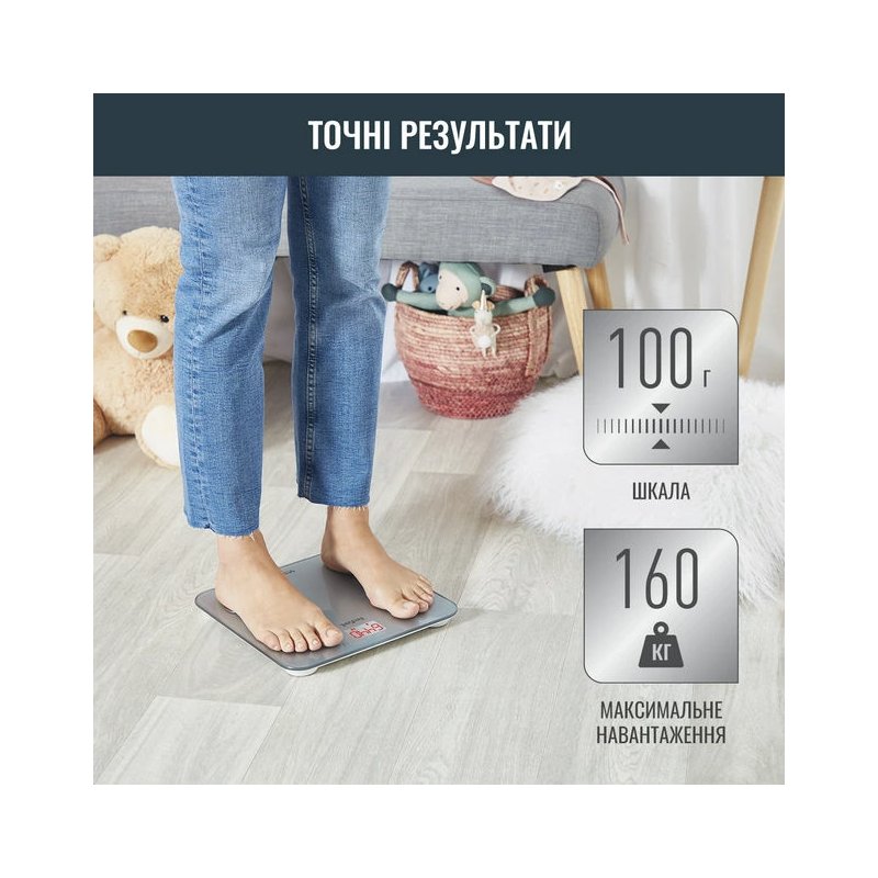 Широка скляна платформа пропонує класичну естетику в сріблі з видимими електродами та ідеальними розмірами (28 x 28 см).