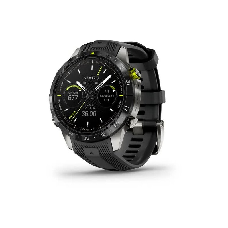 Сучасний годинник-інструмент MARQ Athlete (Gen 2) з розкішним сенсорним дисплеєм AMOLED створений для рішучих спортсменів. Корпус 46 мм виготовлений з титану Класу 5, циферблат обрамляє елегантний чорний безель з DLC-покриттям. Годинник ультраміцний і має сучасний спортивний дизайн.